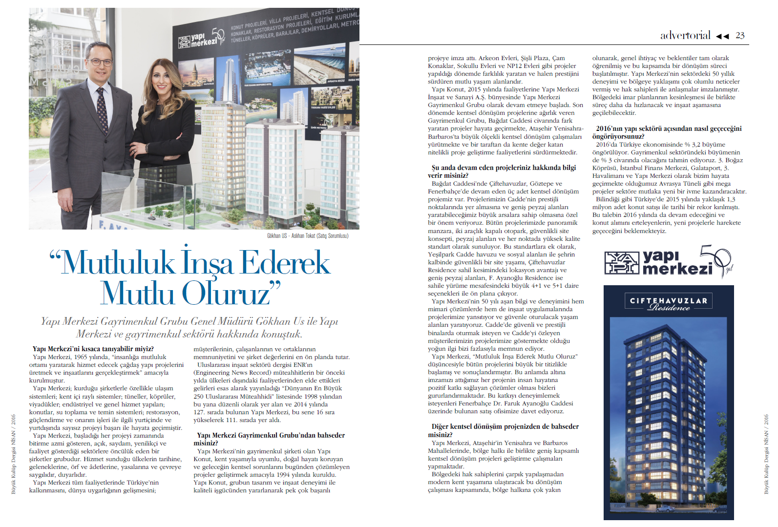 Büyük Kulüp Dergisi, Yapı Merkezi Gayrimenkul Grubu Genel Müdürü Gökhan Us ile Şirket faaliyetleri ve gayrimenkul sektörü hakkında bir röportaj gerçekleştirdi.